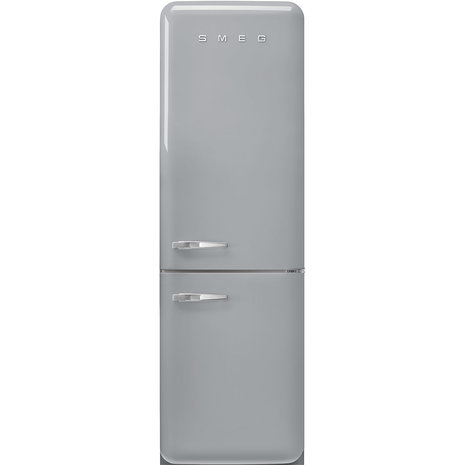 Smeg FAB32RSV5. De Smeg FAB32RSV5 is een rechtsdraaiende koel/vriescombinatie uitgevoerd in de kleur Zilvermetallic en voorzien van het kenmerkende retro jaren'50 design. Deze koelkast heeft een zuinig energieklasse D label en beschikt over een No-Frost vriesgedeelte welke nooit meer ontdooit hoeft te worden. Het vriesgedeelte (inhoud 97 liter) heeft 3 compartimenten waaronder 2 lades en een klep.