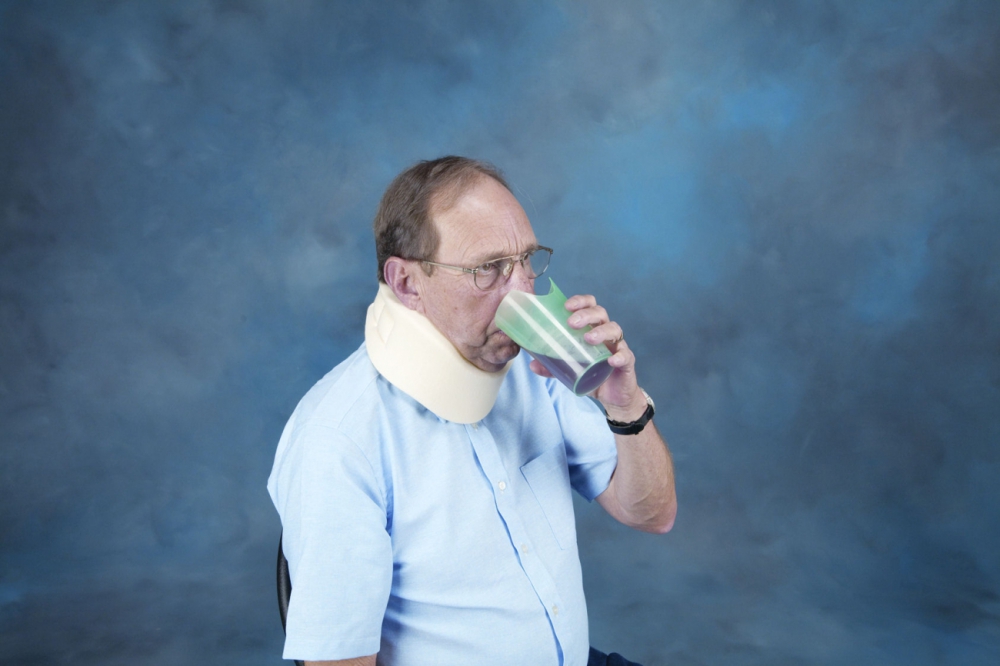 Een uitkomst voor mensen die het hoofd niet naar achteren kunnen buigen. De neus past in de opening tijdens het drinken. Gemaakt van polypropyleen plastic. Kleur groen transparant. Geschikt voor de magnetron en vaatwasser. Ook verkrijgbaar in blauw.