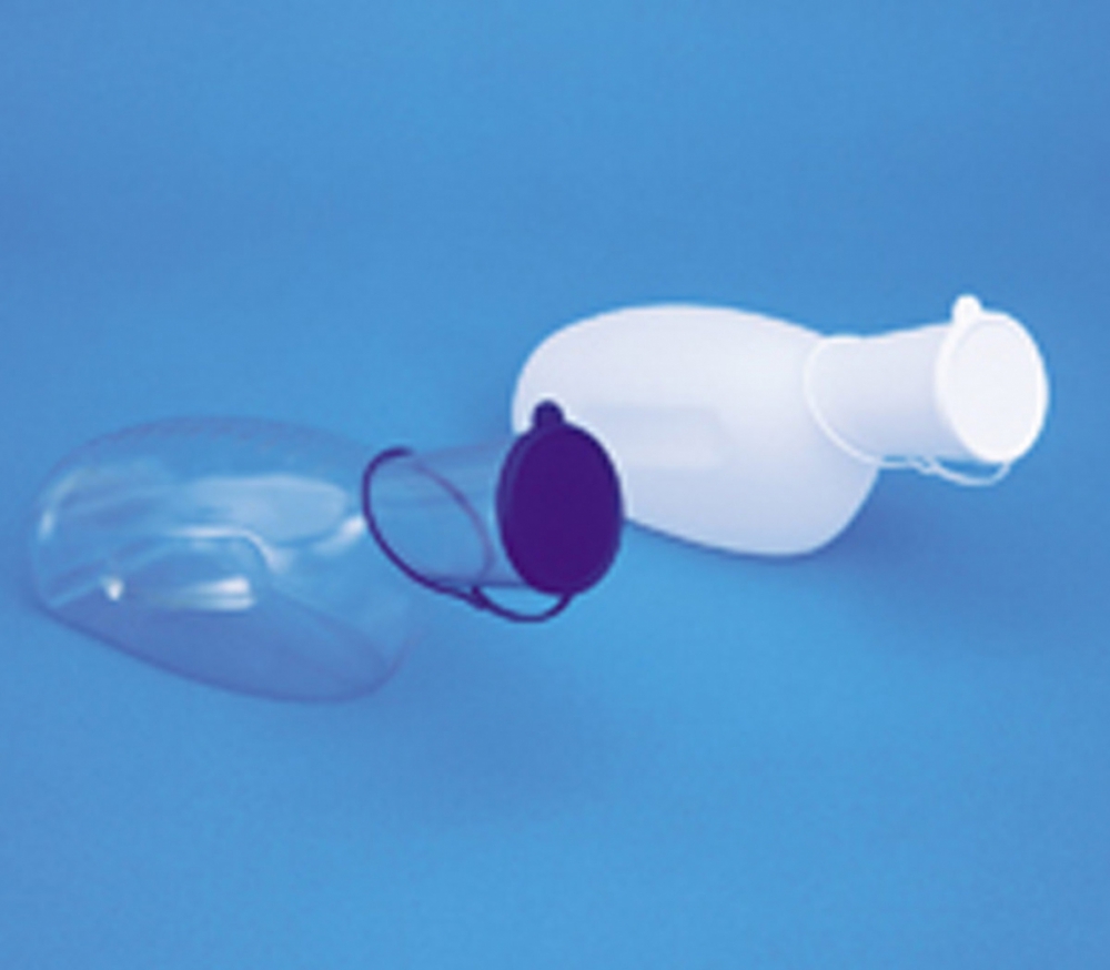 Transparante urinaal voor mannen. Inhoud 1 liter. Inclusief maatvoering. Voorzien van een sluiting. Urinaal is hittebestendig tot 80° C.
