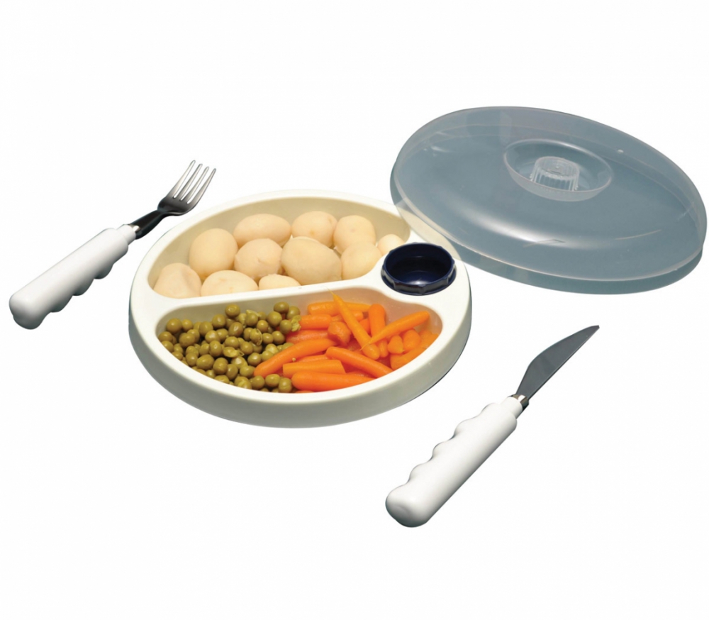 Het 2 vaks warmhoudbord houdt uw maaltijd langer warm door het reservoir te vullen met heet (niet kokend) water. De knop sluit het reservoir af maar is ook als eierdop te gebruiken. Inclusief deksel. Gemaakt van kunststof. Hoogte 3,5 cm.